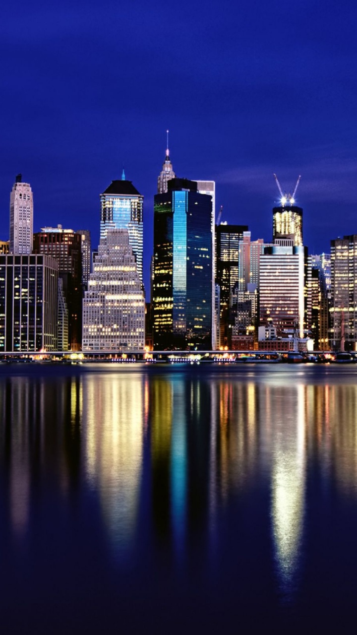 Fondos 720x1280 Horizonte de la Ciudad a Través Del Cuerpo de Agua Durante la Noche., Android Phone HD Samsung Galaxy S3/J3/J4/J5, Meizu M5, Sony Xperia L1/L2 Imágenes