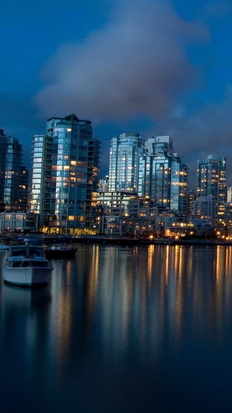 Fondos 750x1334 Horizonte de la Ciudad a Través Del Cuerpo de Agua Durante la Noche., IPhone 6, 6S, 7, 8 Imágenes