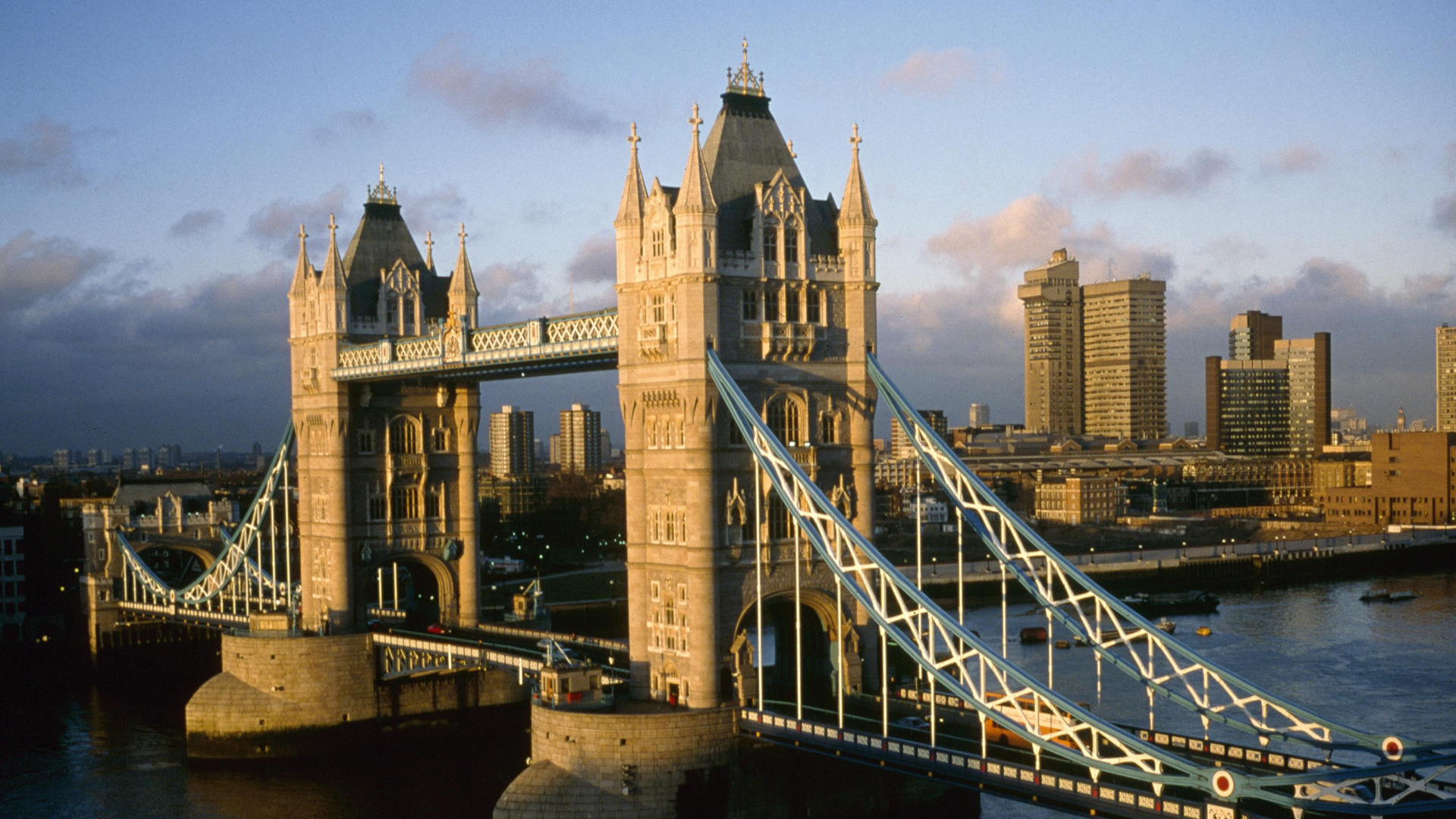 Fondos 1920x1080 Edificio de Hormigón Marrón Cerca Del Puente Bajo un Cielo Azul Durante el Día, Full HD, HDTV, 1080p 16:9 Imágenes