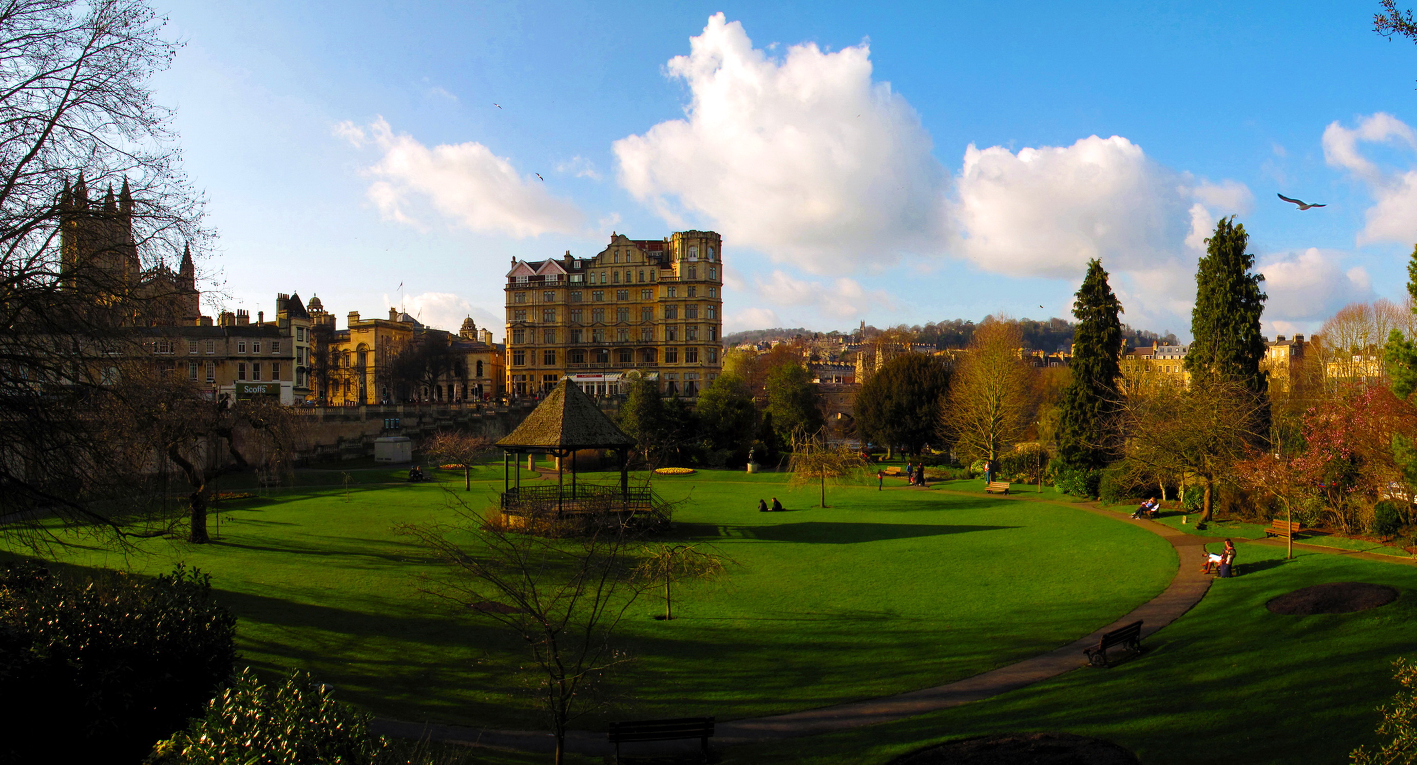 Fondos Edificio de Hormigón Marrón Cerca Del Campo de Hierba Verde Bajo Las Nubes Blancas y el Cielo Azul Durante el Día de Pantalla e Imágenes