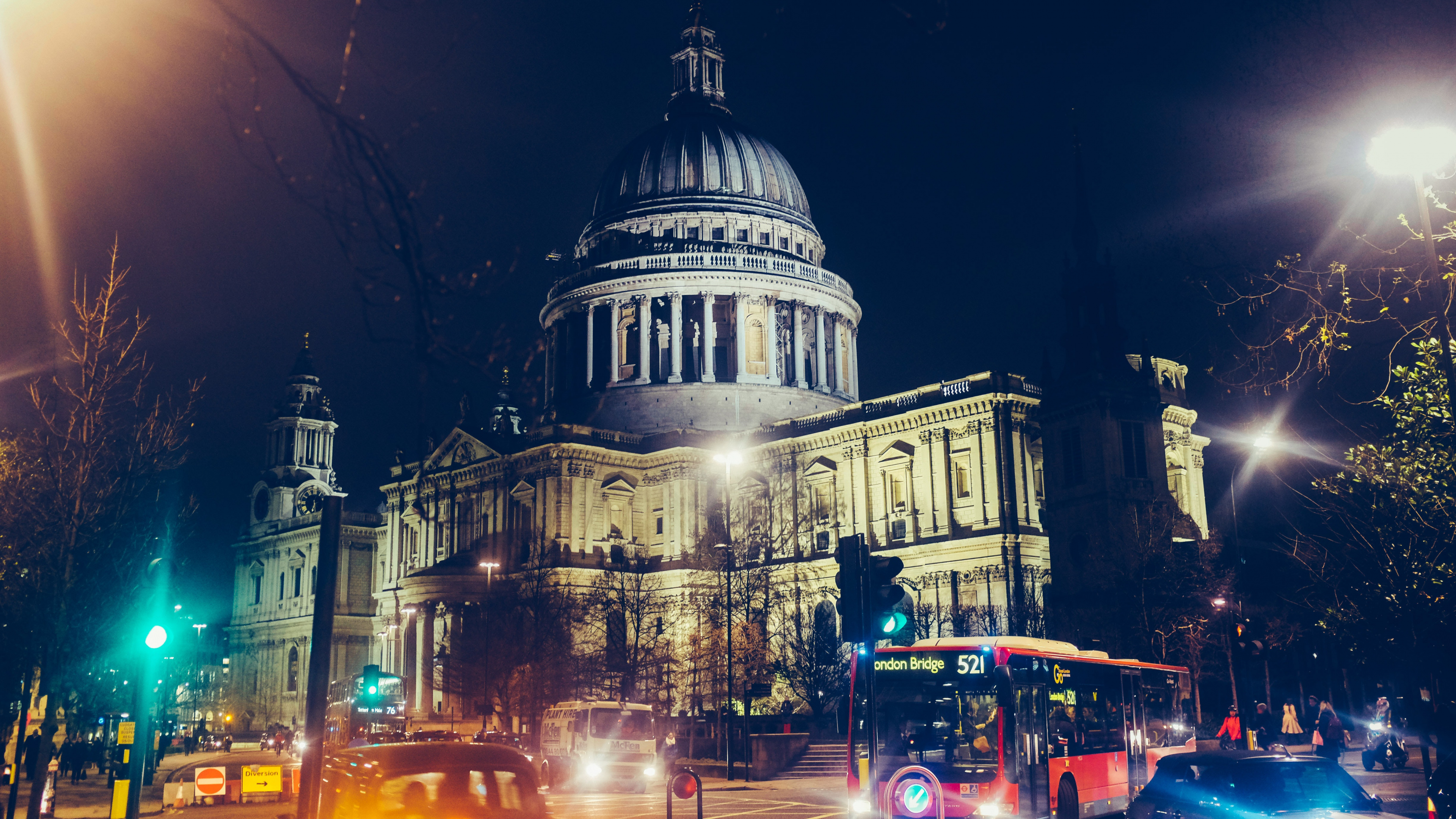 Fondos 3840x2160 Coches en la Carretera Cerca Del Edificio Durante la Noche., 4K Ultra HD Imágenes