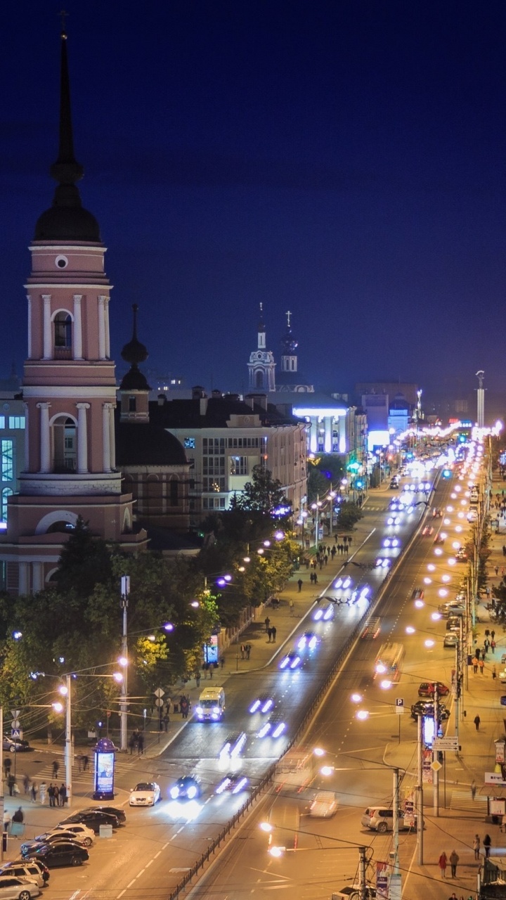 Fondos 720x1280 Coches en la Carretera Entre Edificios de Gran Altura Durante la Noche, Android Phone HD Samsung Galaxy S3/J3/J4/J5, Meizu M5, Sony Xperia L1/L2 Imágenes