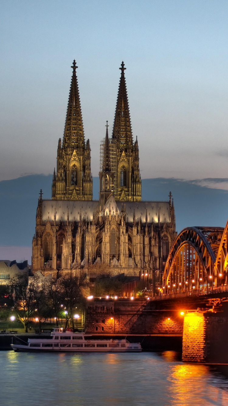 Fondos 750x1334 Puente de Hormigón Marrón Sobre el Río Durante la Noche, IPhone 6, 6S, 7, 8 Imágenes