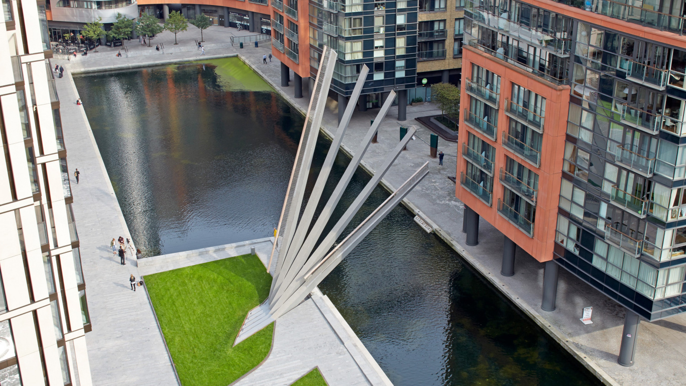 Fondos 1366x768 Edificio de Hormigón Marrón y Blanco Junto al Río Durante el Día, Laptop Imágenes
