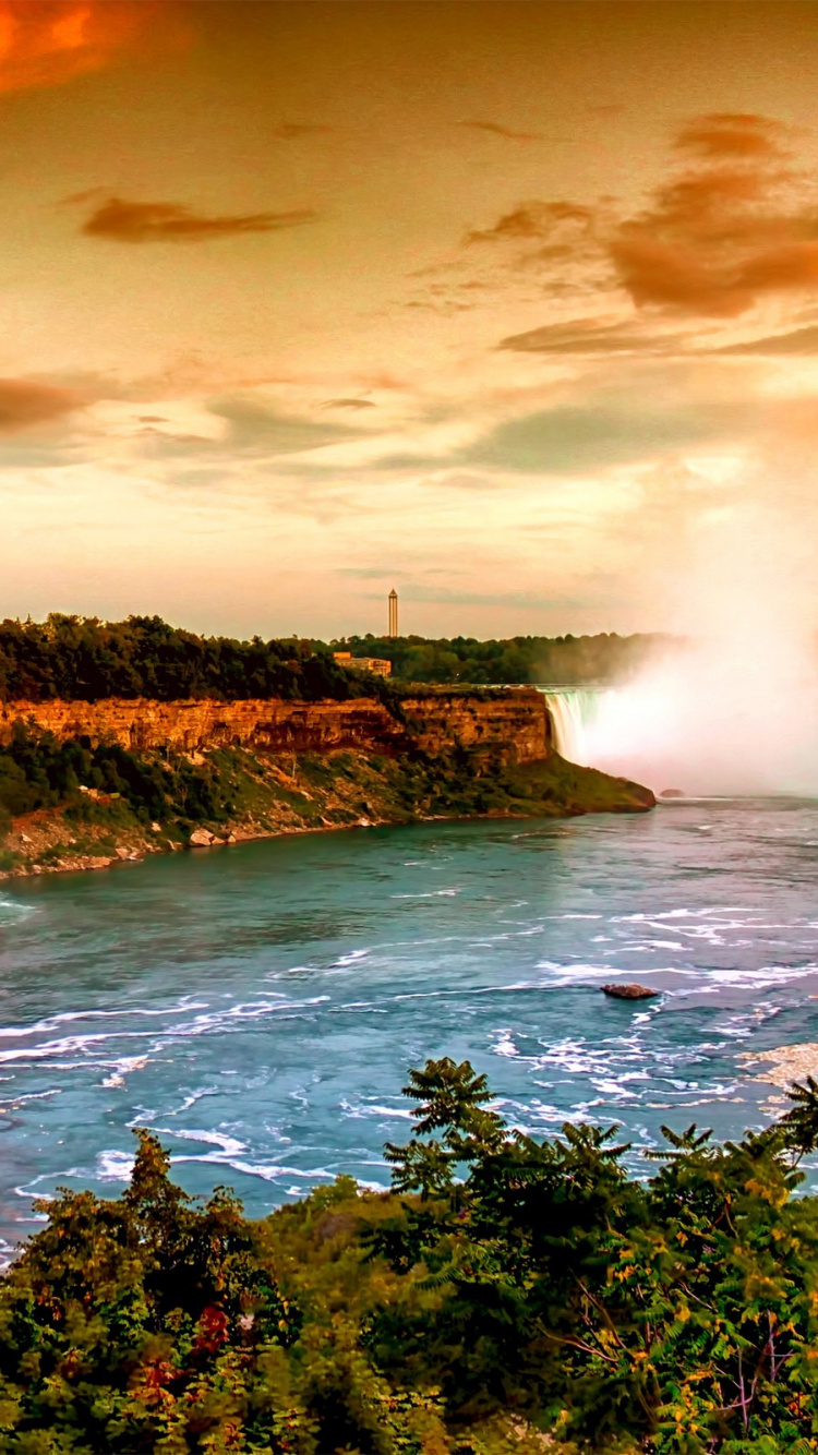 Fondos 750x1334 Cascadas Cerca de Árboles Verdes Bajo el Cielo Nublado Durante el Día, IPhone 6, 6S, 7, 8 Imágenes