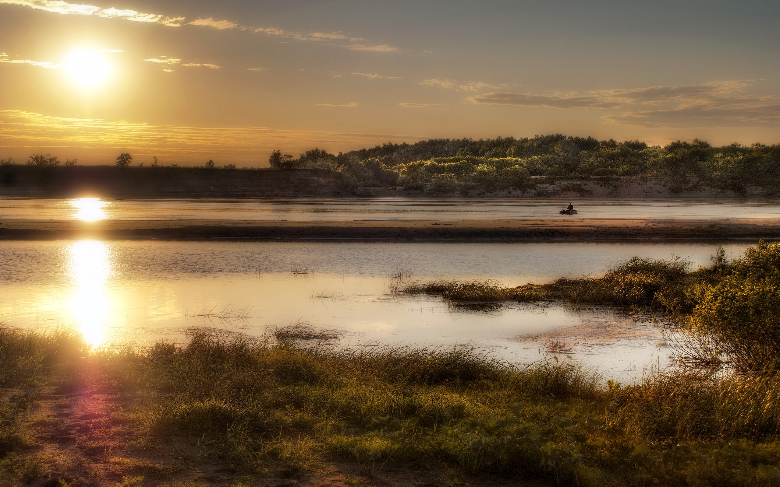 Les Fonds D’écran Champ D'herbe Verte Près du Lac Pendant le Coucher du Soleil et Les Images