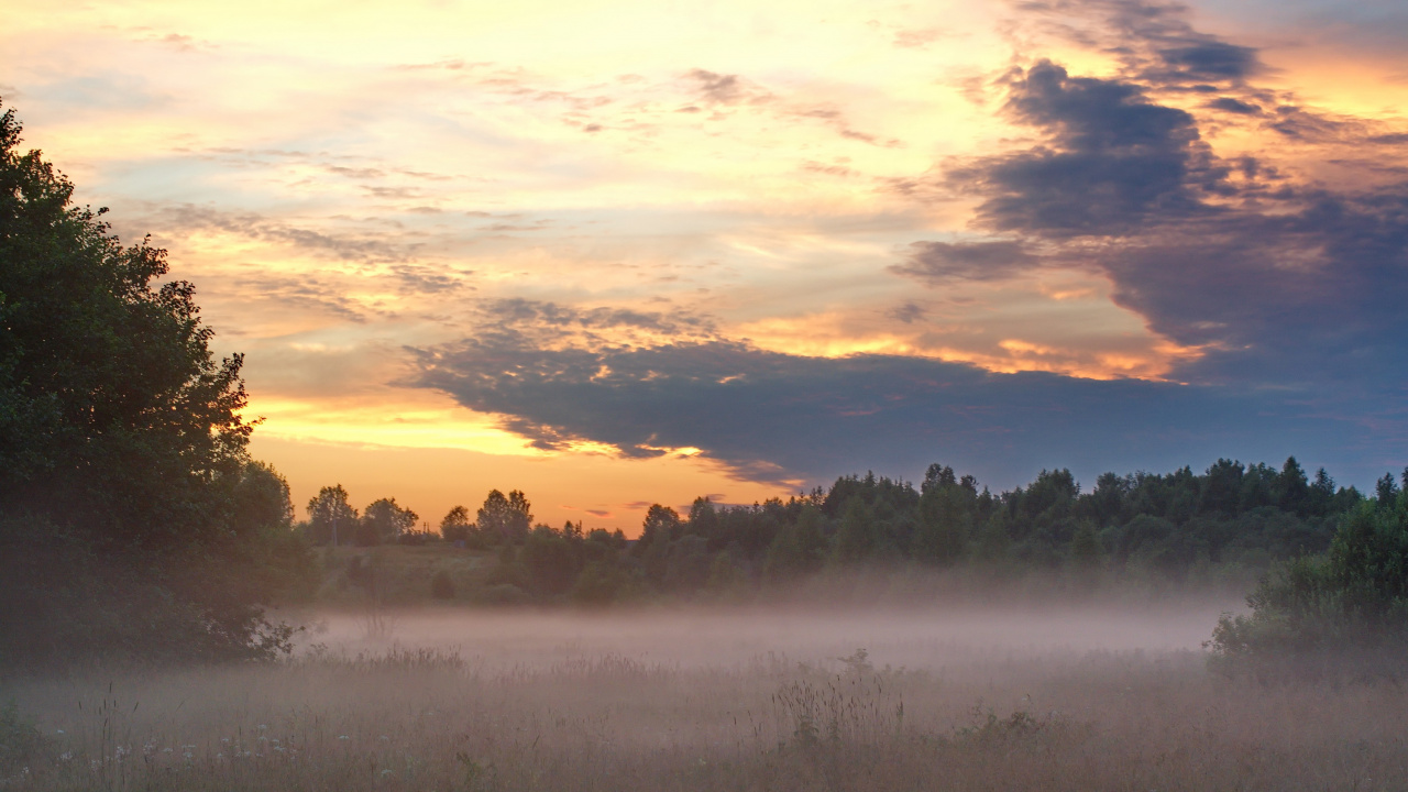 Les Fonds D’écran 1280x720 Champ D'herbe Verte Près du Plan D'eau Pendant le Coucher du Soleil, HD, HDV, 720p, 16:9 Images