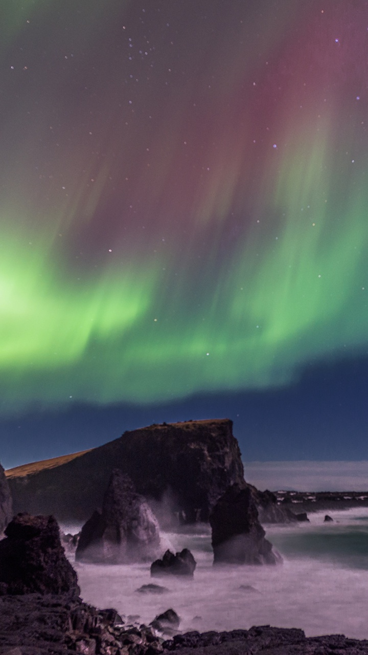 Les Fonds D’écran 720x1280 Rock Formation Sur Mer Sous Ciel Vert, Android Phone HD Samsung Galaxy S3/J3/J4/J5, Meizu M5, Sony Xperia L1/L2 Images