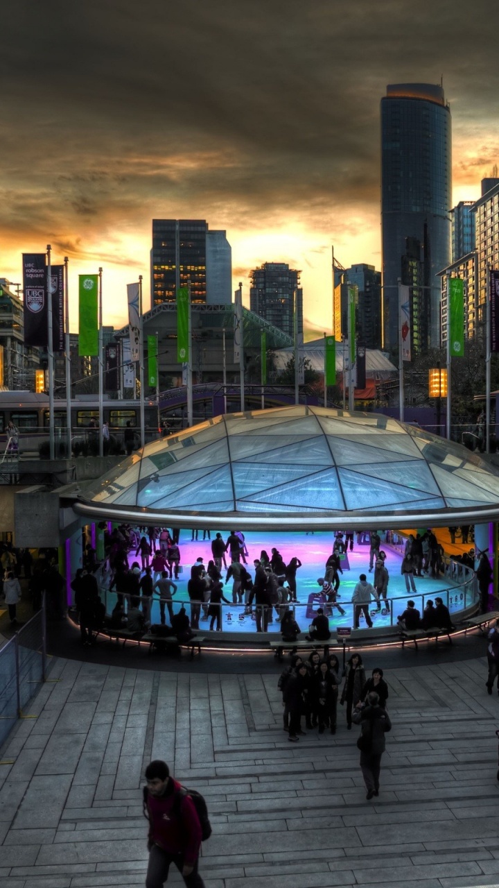 Les Fonds D’écran 720x1280 Personnes Marchant Sur le Parc Près Des Immeubles de Grande Hauteur Pendant la Nuit, Android Phone HD Samsung Galaxy S3/J3/J4/J5, Meizu M5, Sony Xperia L1/L2 Images