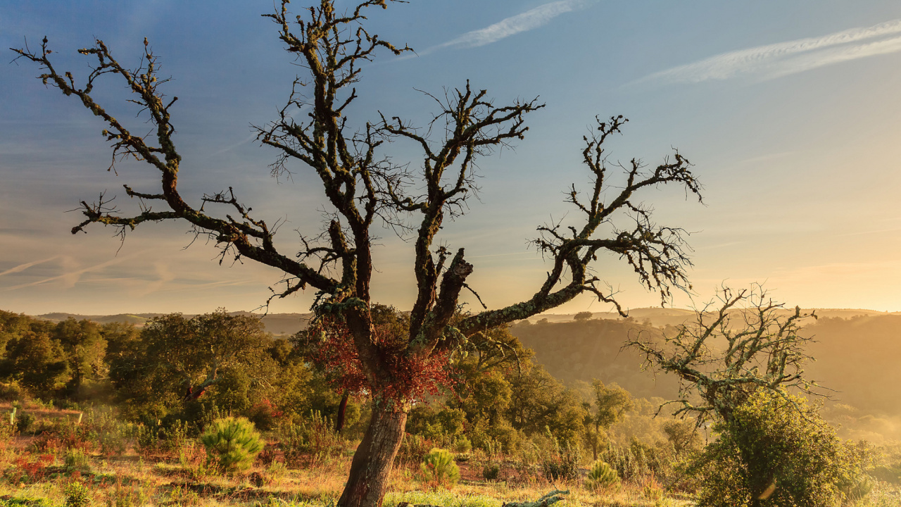 Les Fonds D’écran 1280x720 Champ D'herbe Verte Avec Des Arbres Sous Ciel Bleu Pendant la Journée, HD, HDV, 720p, 16:9 Images