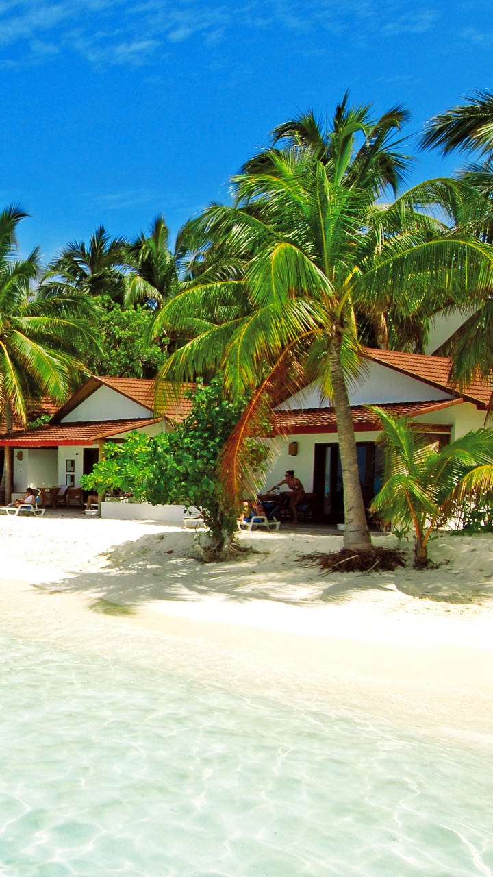 Les Fonds D’écran 720x1280 Chaises Longues de Plage en Bois Marron Sur la Plage de Sable Blanc Pendant la Journée, Android Phone HD Samsung Galaxy S3/J3/J4/J5, Meizu M5, Sony Xperia L1/L2 Images
