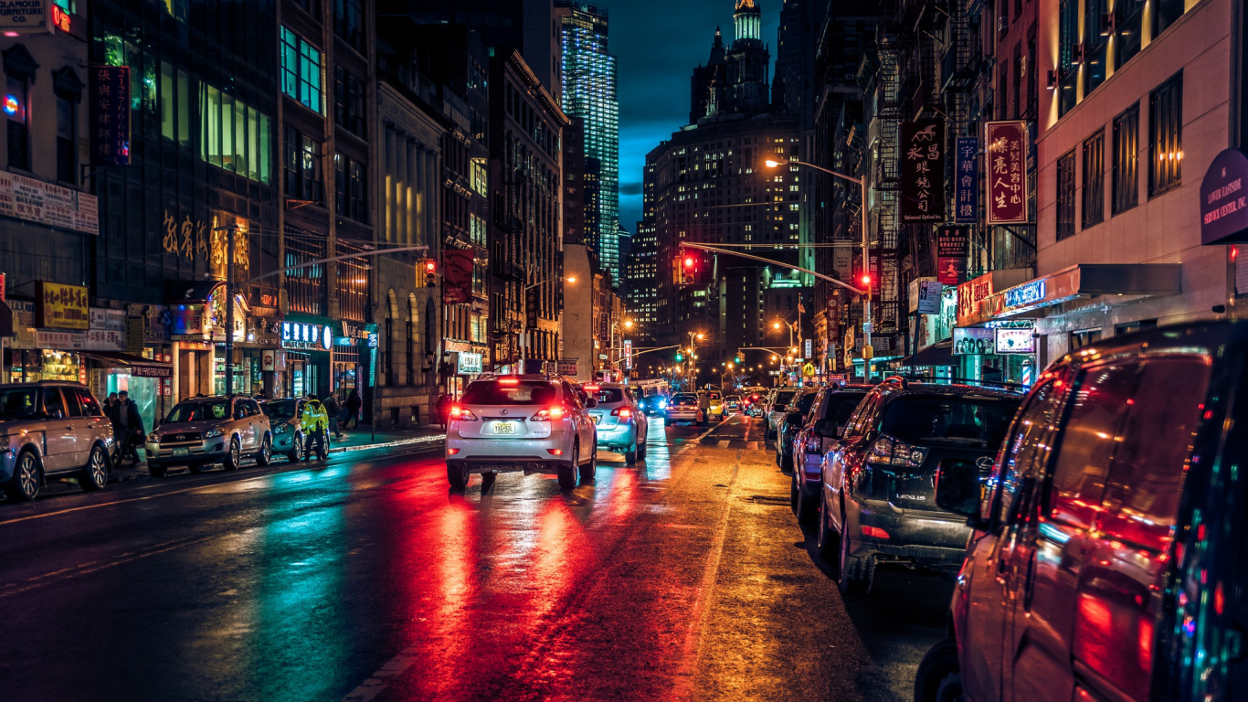 Les Fonds D’écran 1366x768 Voitures Sur Route Entre Les Immeubles de Grande Hauteur Pendant la Nuit, Laptop Images