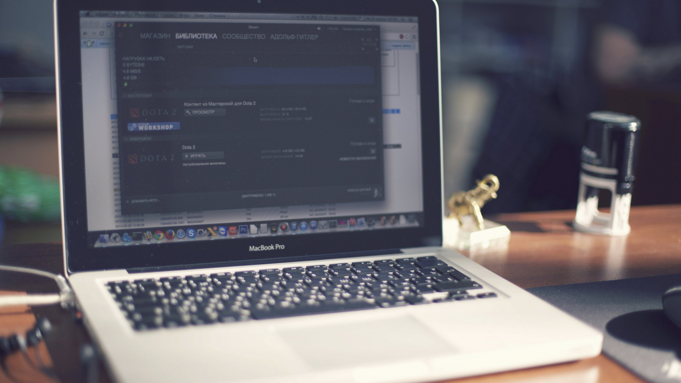 Les Fonds D’écran 1366x768 Macbook Pro Sur Table en Bois Marron, Laptop Images