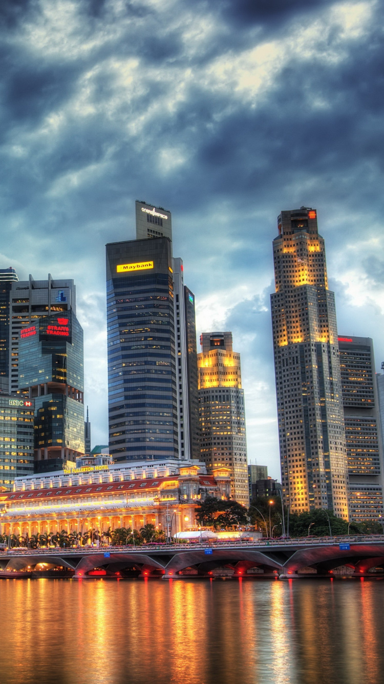 Les Fonds D’écran 750x1334 Horizon de la Ville à Travers le Plan D'eau Pendant la Nuit, IPhone 6, 6S, 7, 8 Images