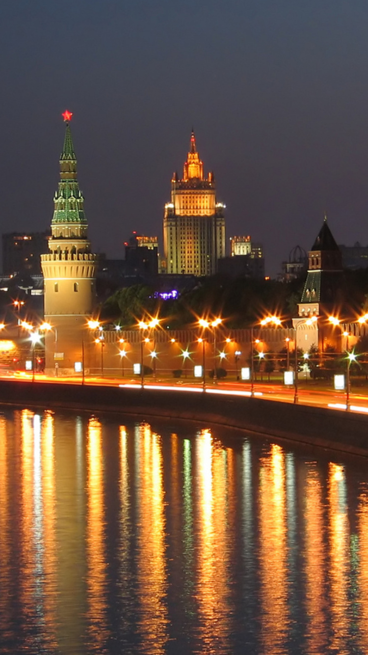 Les Fonds D’écran 750x1334 Bâtiments de la Ville Éclairés Près D'un Plan D'eau Pendant la Nuit, IPhone 6, 6S, 7, 8 Images