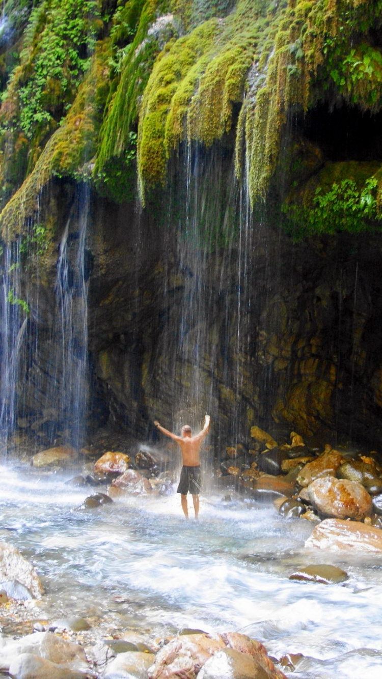 750x1334 Brown Deer Standing on Rocky River During Daytime Wallpaper for IPhone 6, 6S, 7, 8