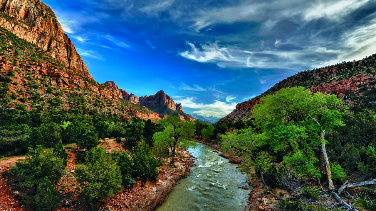 River Between Green Trees Under Blue Sky During Daytime HD, HDV, 720p, 16:9 Wallpaper in 1280x720