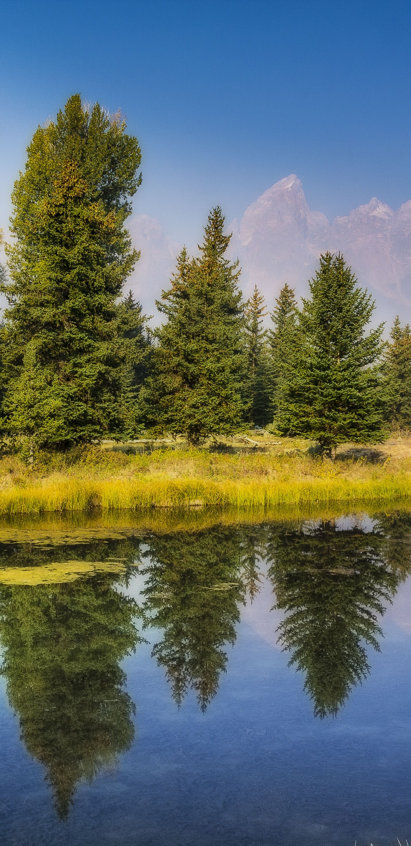 1440x2960 Green Trees Beside Lake Under Blue Sky During Daytime Wallpaper for Samsung Galaxy S8/S8+/S9/S9+/Note 8/Note 9 QHD