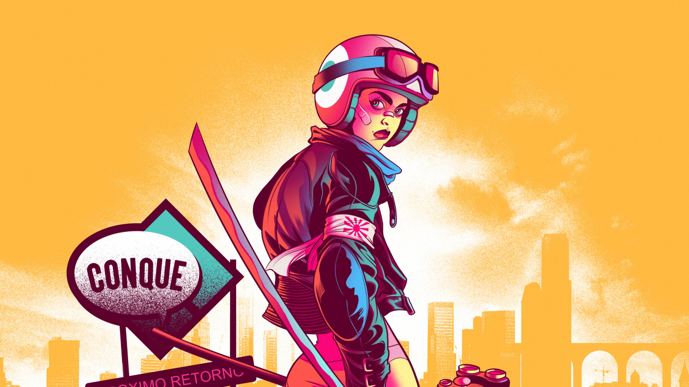 Woman in Red and Black Dress Holding Purple Umbrella Illustration Laptop Wallpaper in 1366x768