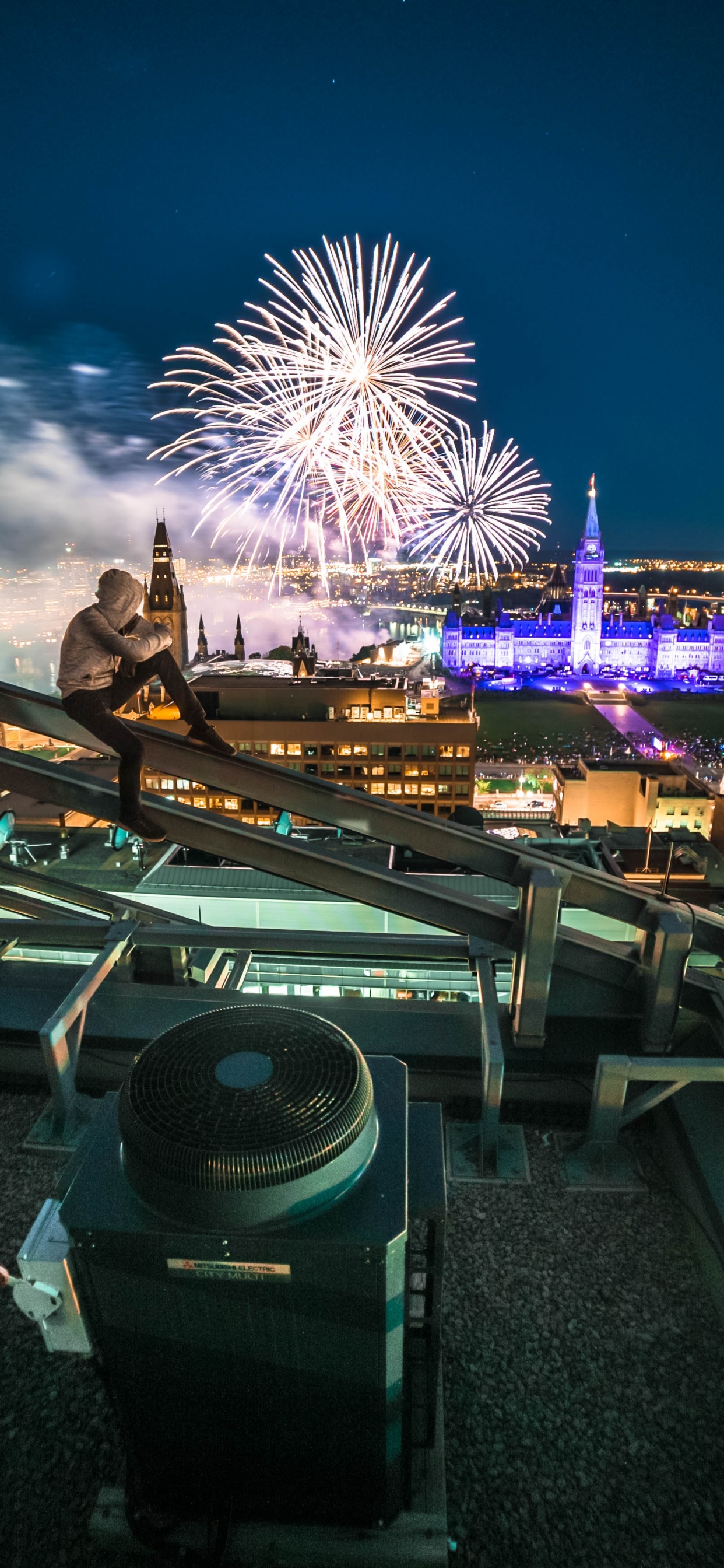1242x2688 Man in Black Jacket Standing on Top of Building During Night Time Wallpaper for IPhone XS Max