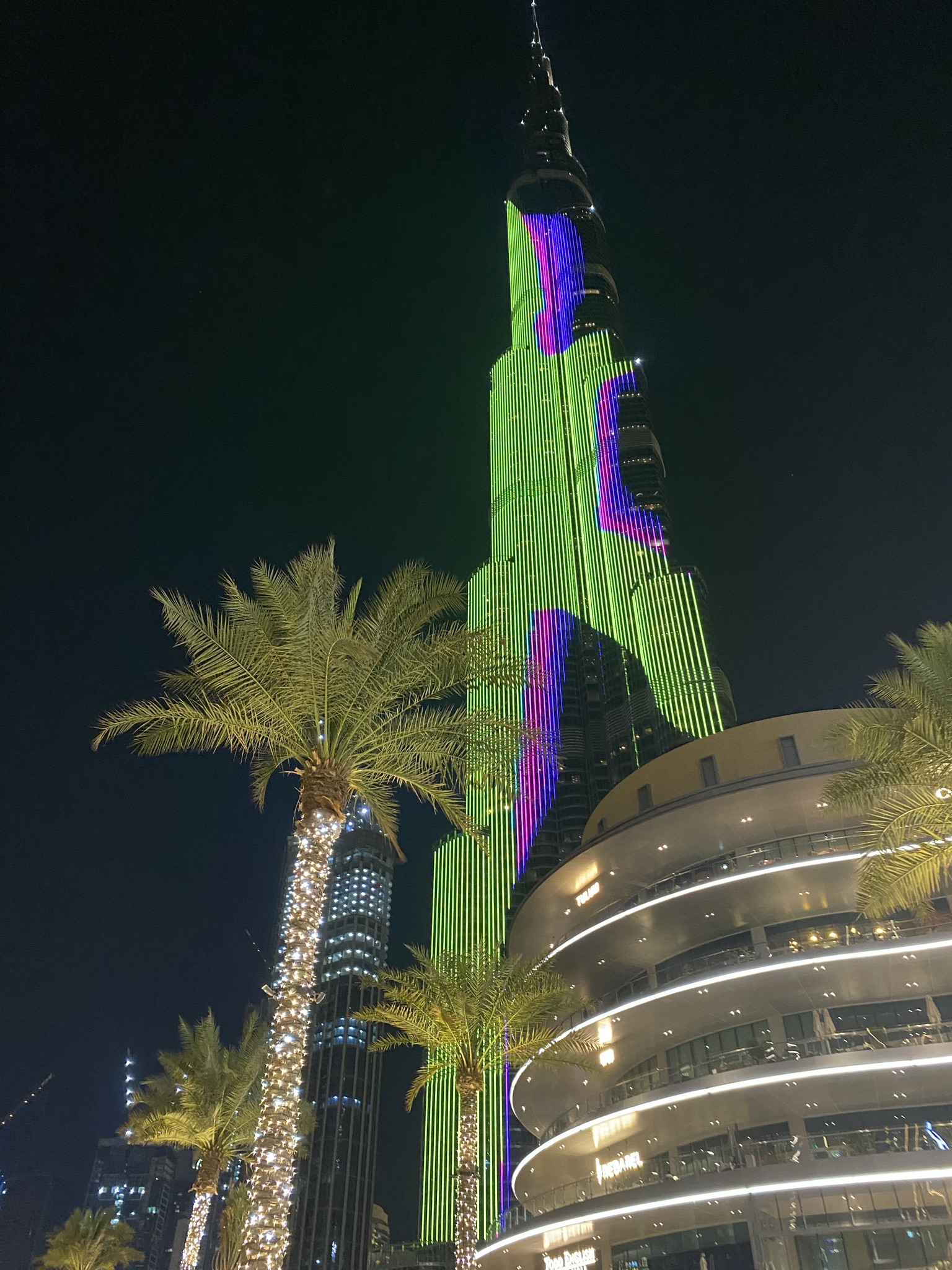 Tower, Palm Trees, Majorelle Blue, Facade, Night Wallpaper