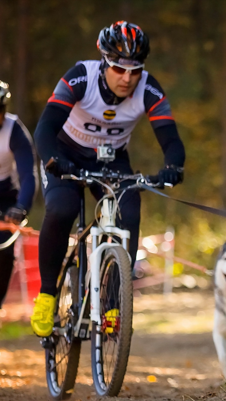 720x1280 Person in Red and White Jacket Riding on Black and White Siberian Husky HD Wallpaper for Android Phone