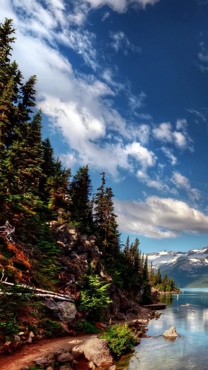 720x1280 Green Trees Near Lake Under Blue Sky and White Clouds During Daytime HD Wallpaper for Android Phone