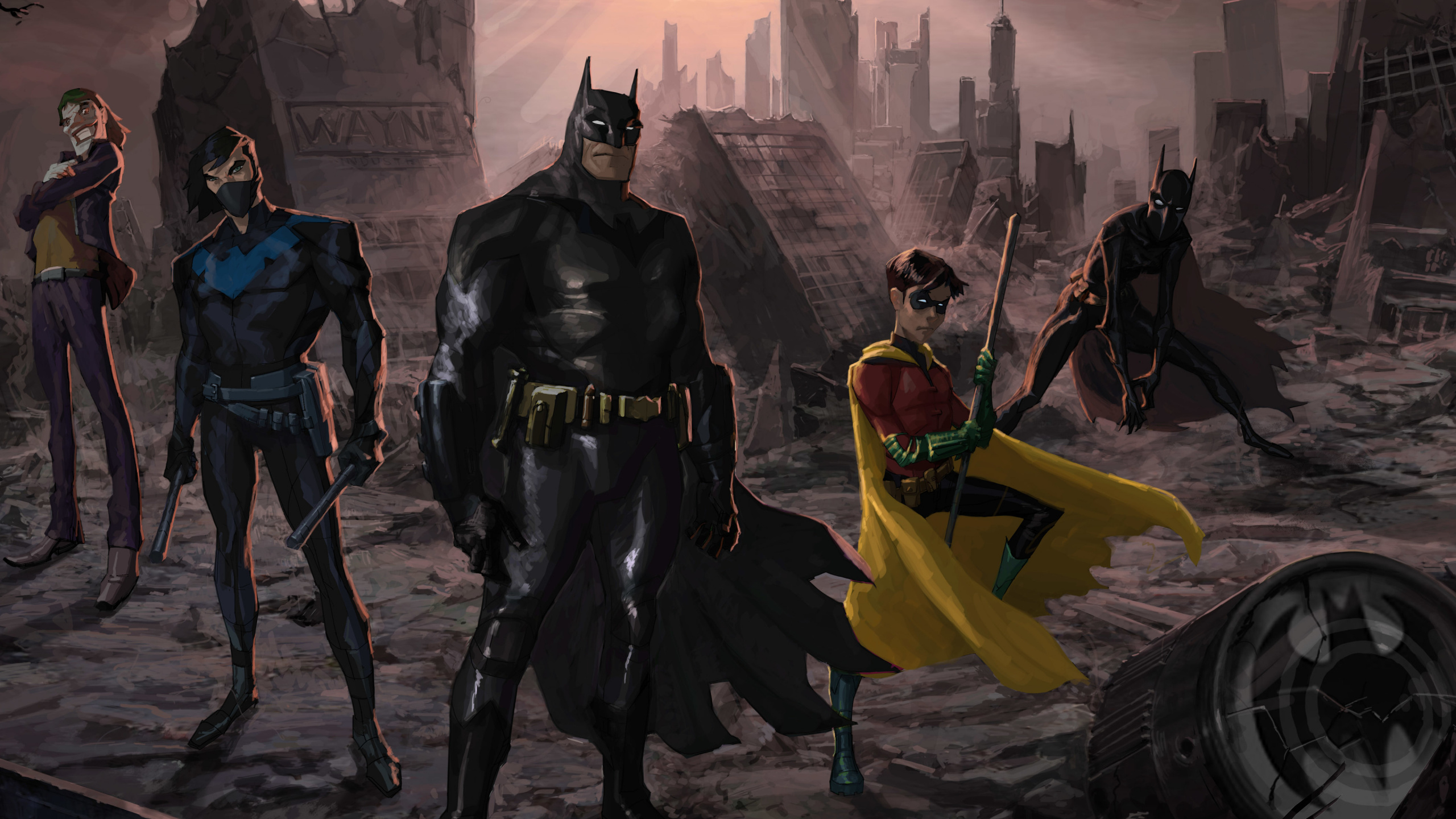 Man in Black and Yellow Suit Holding a Sword Beside Man in Black Suit WQHD, QHD, 16:9 Wallpaper in 2560x1440