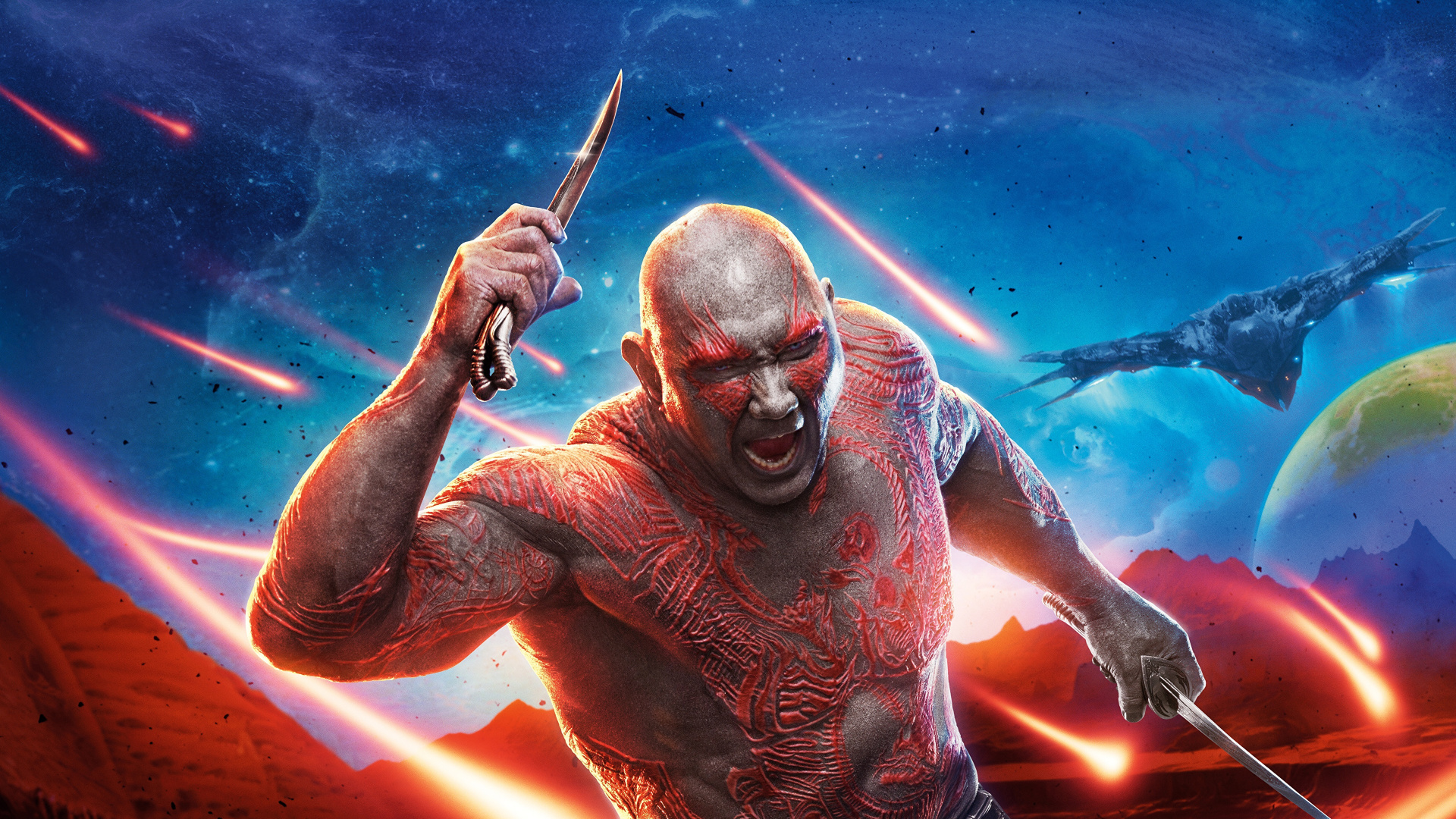 Man in Black Shorts With Body Tattoo Holding Knife Full HD, HDTV, 1080p 16:9 Wallpaper in 1920x1080