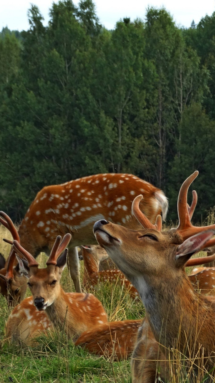 750x1334 Brown Deer on Green Grass Field During Daytime Wallpaper for IPhone 6, 6S, 7, 8