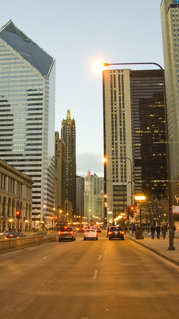 720x1280 Cars Parked on Side of The Road Near High Rise Buildings During Night Time HD Wallpaper for Android Phone