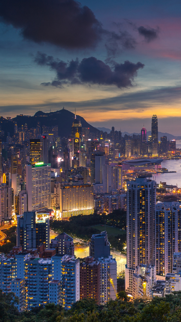 750x1334 City Skyline Near Sea During Sunset Wallpaper for IPhone 6, 6S, 7, 8