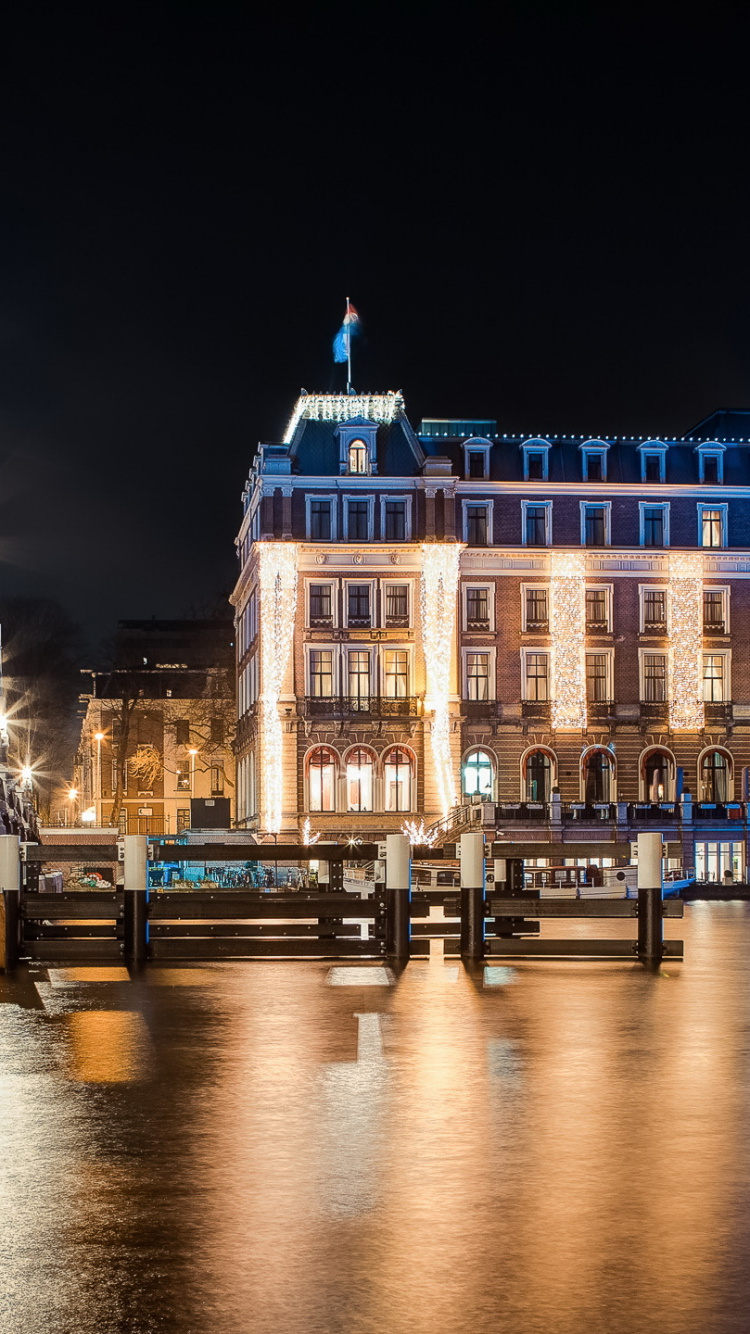 750x1334 White Concrete Building Near Body of Water During Night Time Wallpaper for IPhone 6, 6S, 7, 8