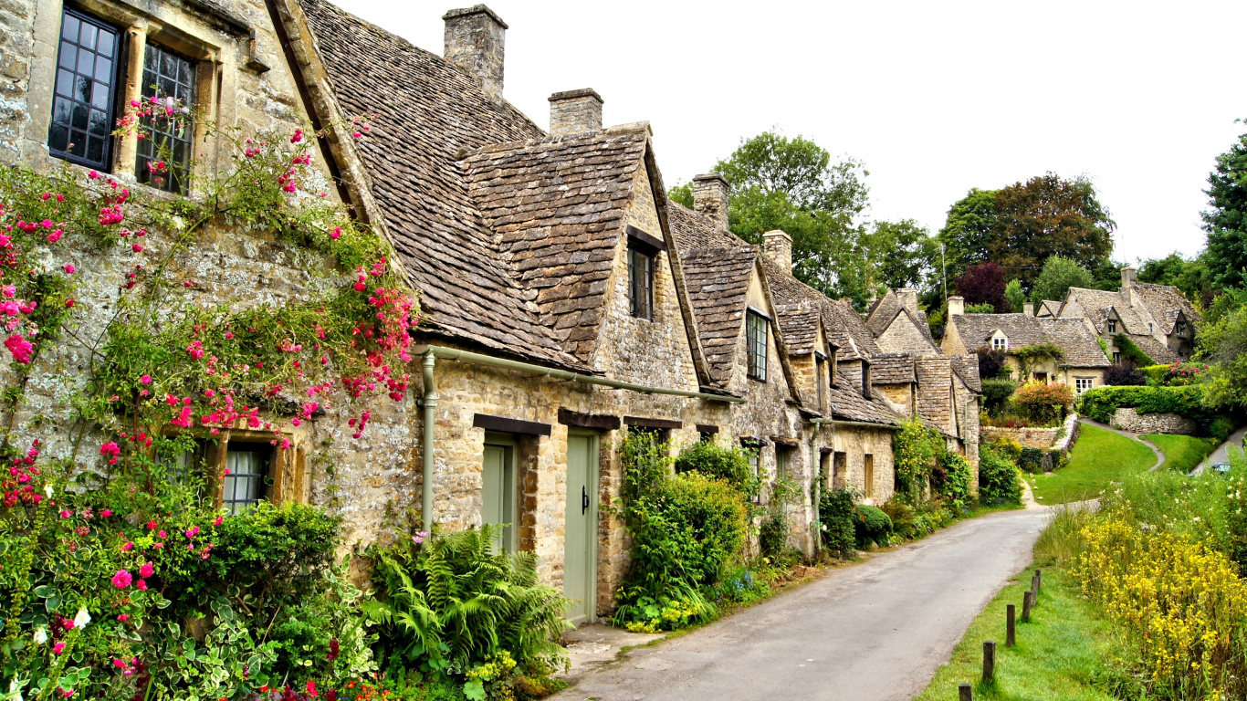 Brown Brick House Near Green Grass Field During Daytime Laptop Wallpaper in 1366x768