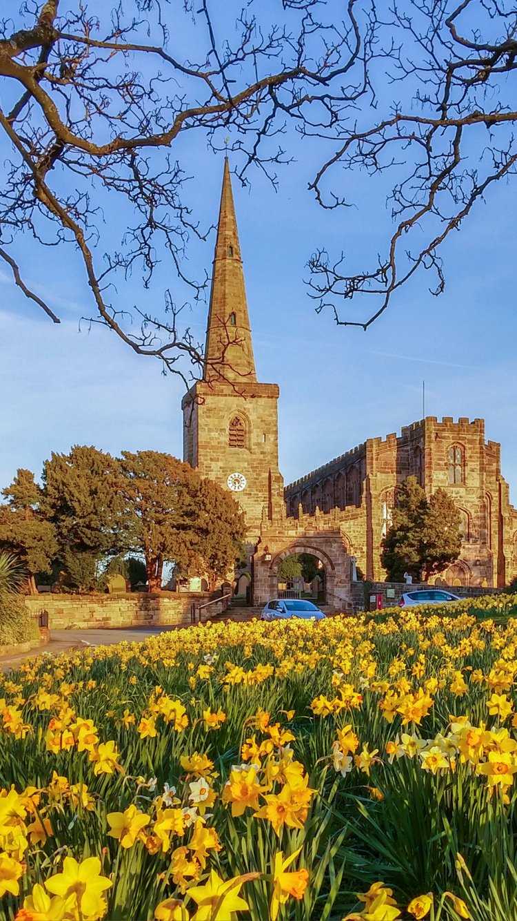 750x1334 Yellow Flower Field Near Brown Concrete Building During Daytime Wallpaper for IPhone 6, 6S, 7, 8