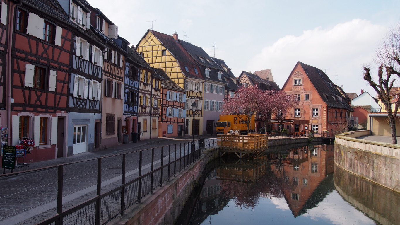 Brown and White Concrete Building Beside River During Daytime Laptop Wallpaper in 1366x768