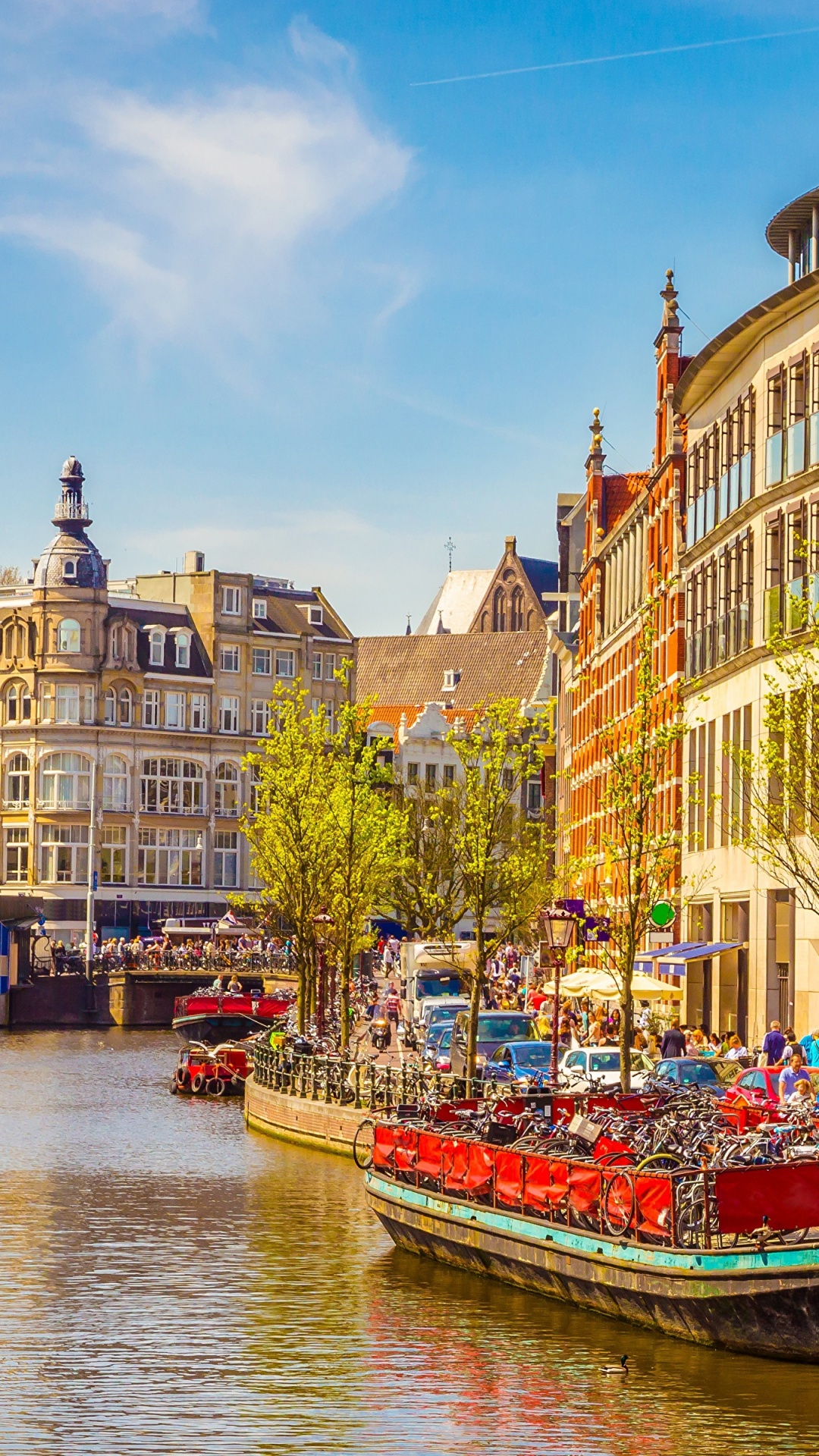 1080x1920 Red Boat on River Near Brown Concrete Building During Daytime Wallpaper for IPhone 6S+/7+/8+
