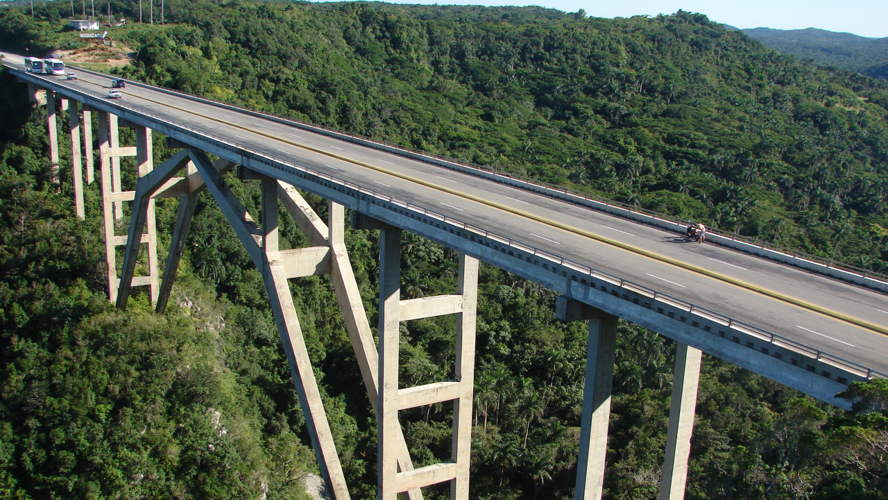 White Metal Bridge Over Green Trees During Daytime HD, HDV, 720p, 16:9 Wallpaper in 1280x720