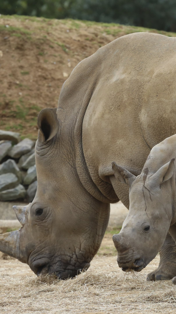 750x1334 2 Rhinoceros on Brown Field During Daytime Wallpaper for IPhone 6, 6S, 7, 8