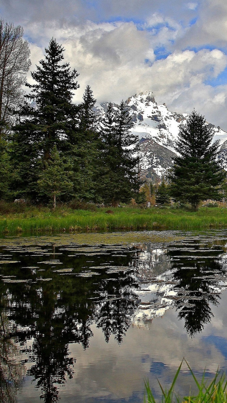 750x1334 Green Grass Field Near Lake and Trees Under White Clouds and Blue Sky During Daytime Wallpaper for IPhone 6, 6S, 7, 8