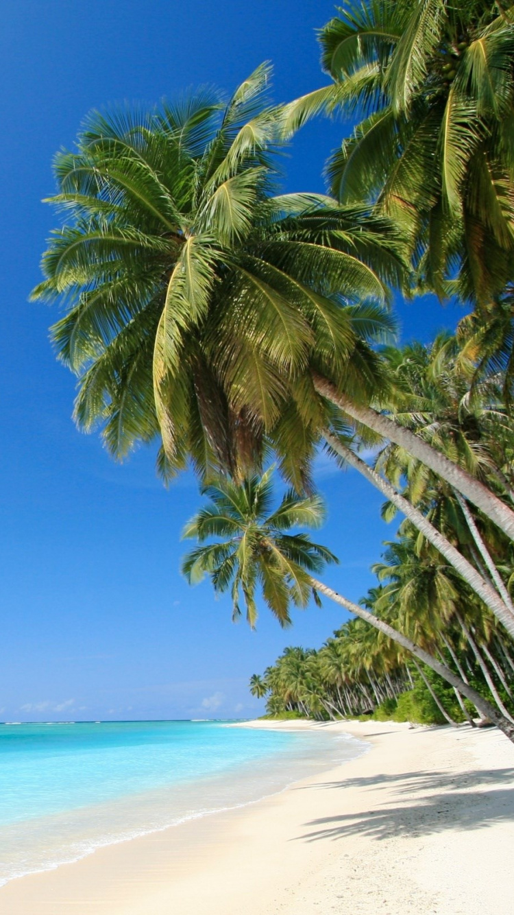 750x1334 Green Palm Tree on White Sand Beach During Daytime Wallpaper for IPhone 6, 6S, 7, 8