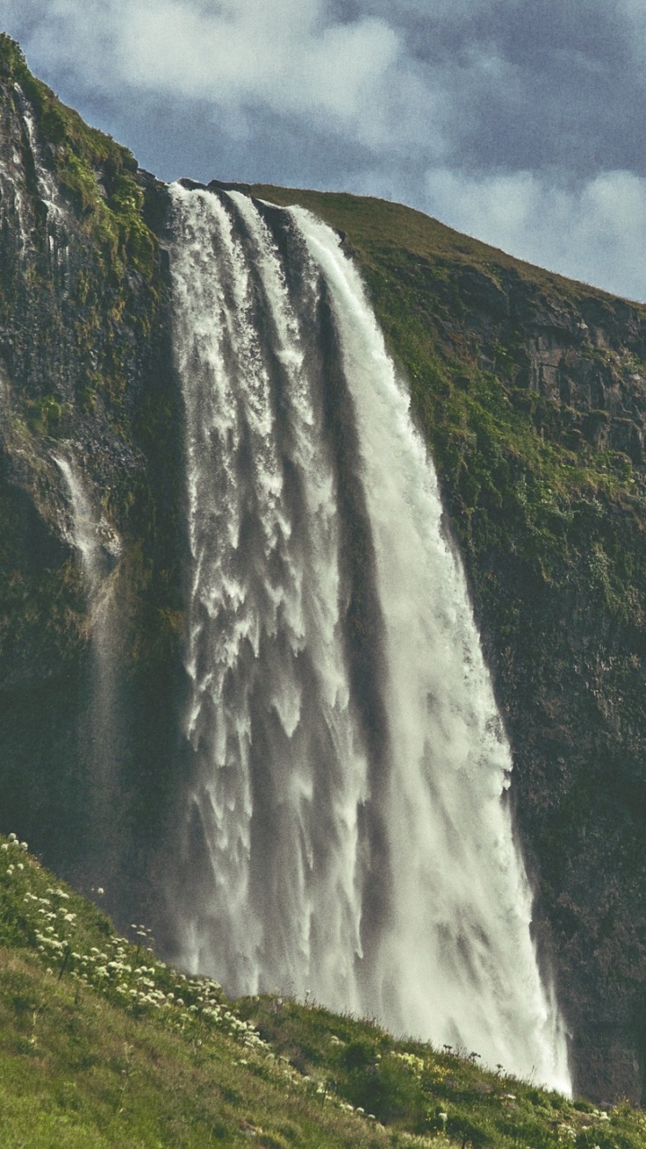 720x1280 Waterfalls on Green Grass Field Under Cloudy Sky During Daytime HD Wallpaper for Android Phone